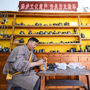 根呷火热在复检即将发往外地的黑陶产品(11月3日摄)。在四川省甘孜藏族自治州德格县麦宿镇,根呷火热忙着制作成都一家餐饮企业的黑陶订单。今年39岁的根呷火热是四川省级非遗麦宿黑陶的传承人,也是麦宿当地黑陶工坊的创始人。捣土、塑形、风干、烧制……在传承与创新中,根呷火热不断钻研,让手工艺品从雪域深山走向省内外消费市场。