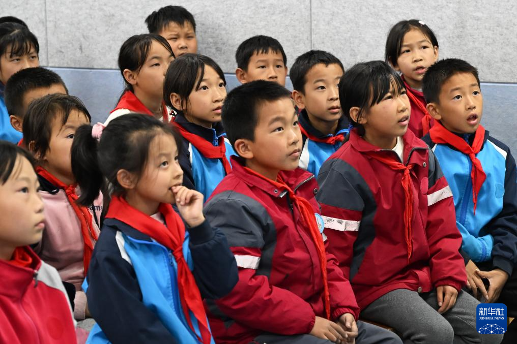 11月14日,婺源县龙山学校的教室内,学生们聆听科研人员讲解自然知识。