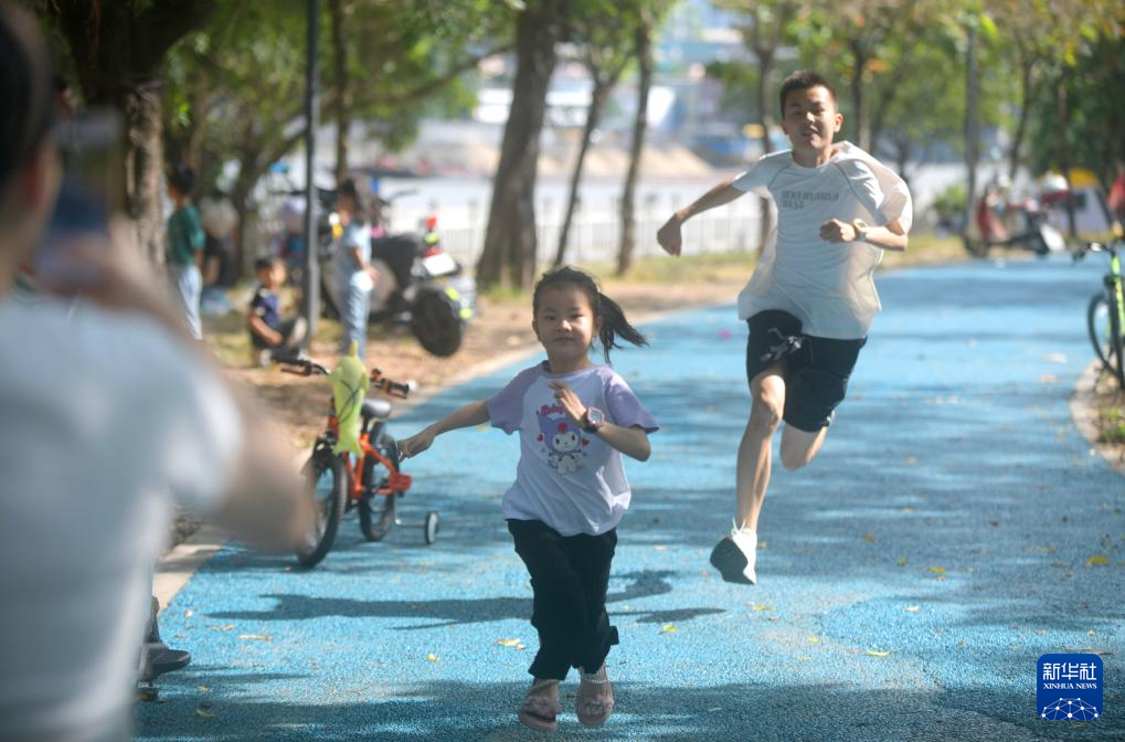11月17日,家长带着小朋友在公园进行户外活动。