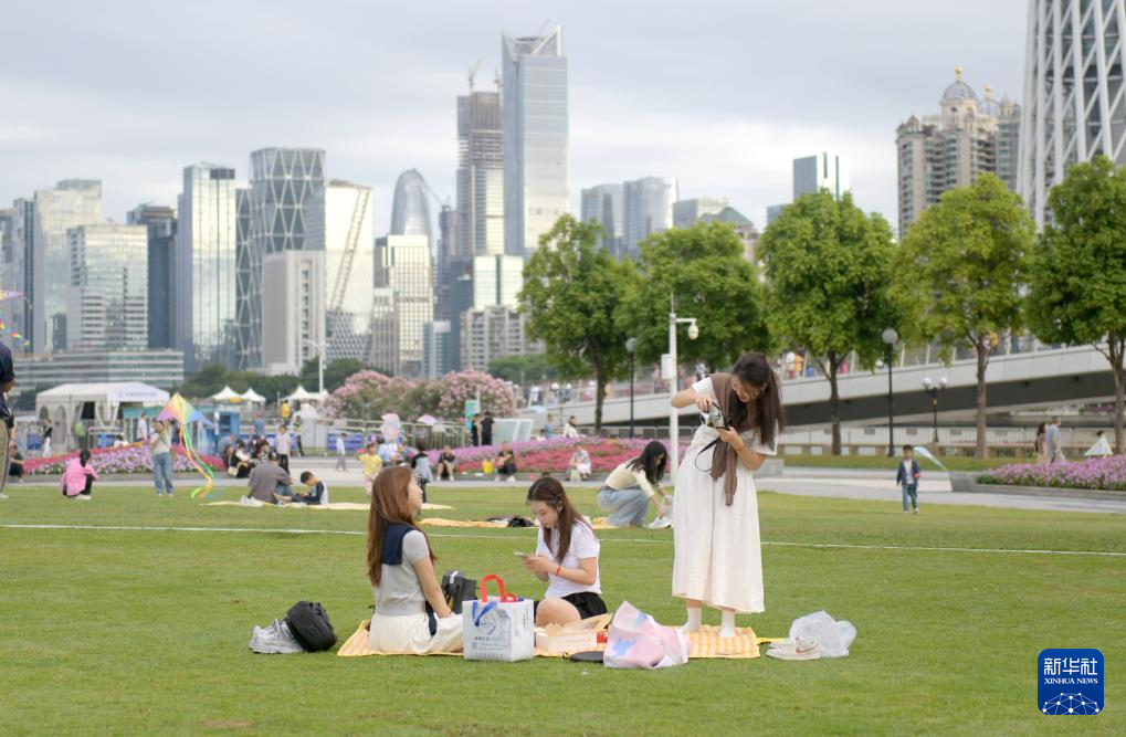 11月16日,市民在广州市二沙岛的草地上野餐。
