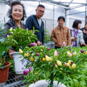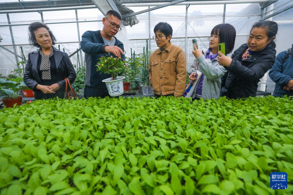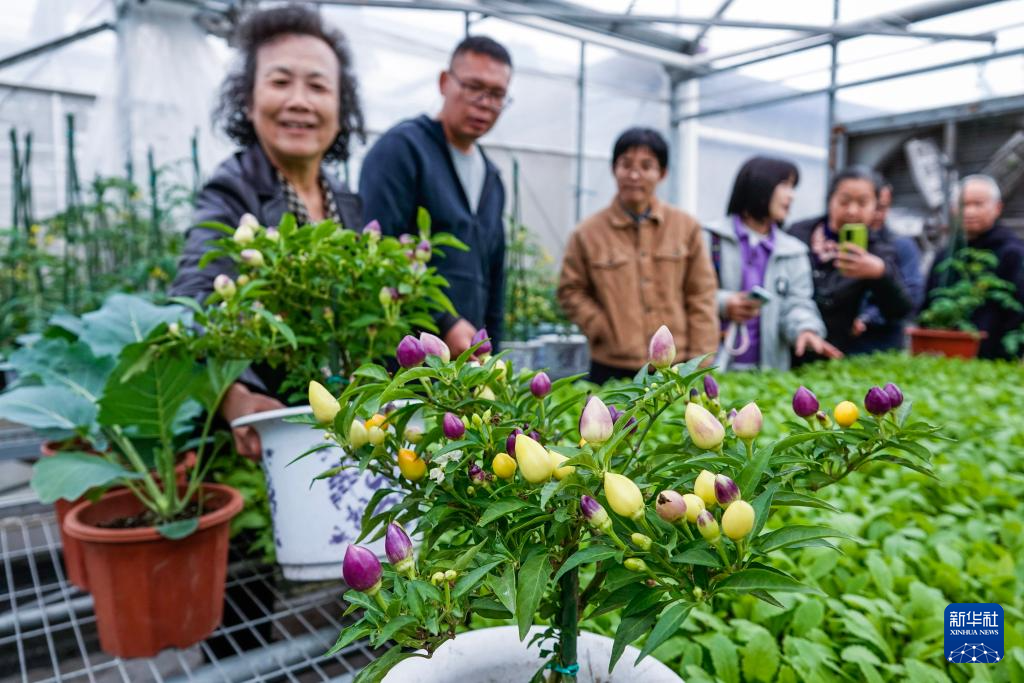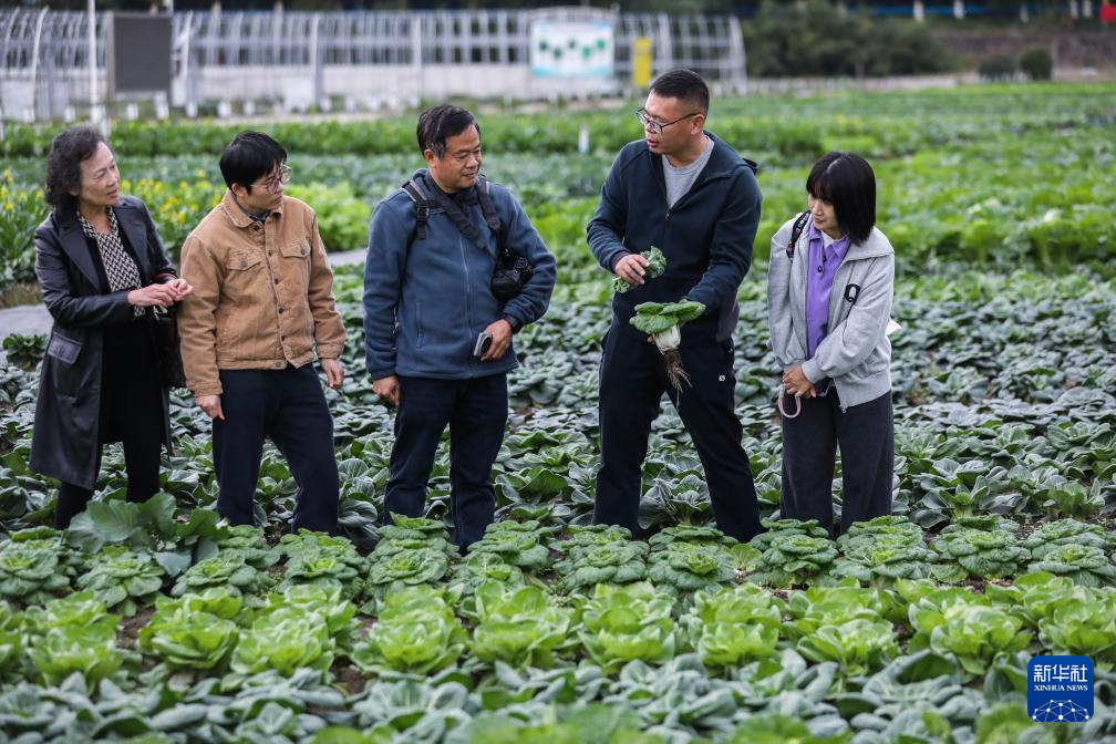 11月18日,在浙江省杭州市钱塘区的“勿忘农集团科研中心”,杭城市民代表、杭州市农业农村局的农技专家参观“阳台菜园”品种展,查看“阳台菜园”各类蔬菜品种。