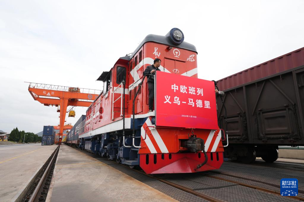 11月18日,中欧班列从义乌西站驶出。