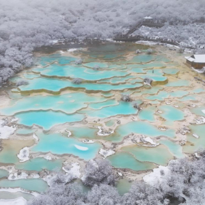 当日,雪后的四川省阿坝藏族羌族自治州黄龙景区薄雾弥漫,仿佛披上了一层轻纱,如梦如幻。