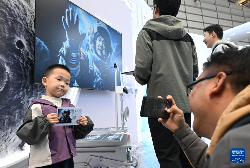 11月19日,在2024年世界互联网大会“互联网之光”博览会上,一名小观众参与AIGC互动体验,并同AI系统生成的自己的虚拟照片合影。