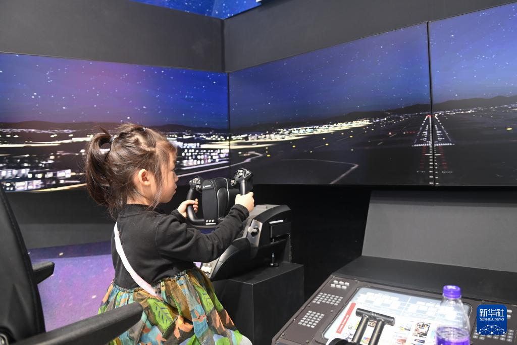11月19日,在2024年世界互联网大会“互联网之光”博览会上,小朋友在数字飞行模拟舱体验操作飞机。