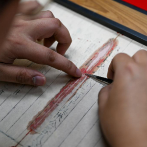 11月18日,在天一阁文物修复中心,谢龙龙在分离书叶。