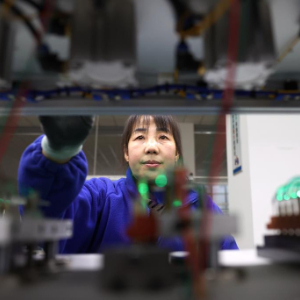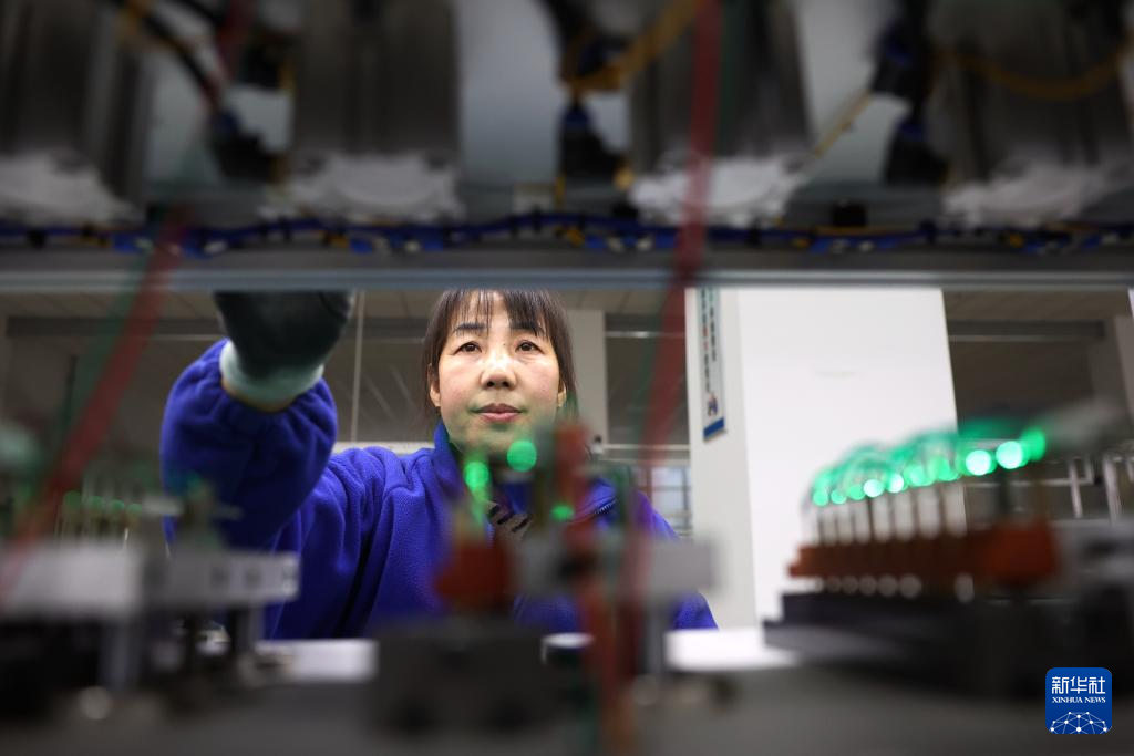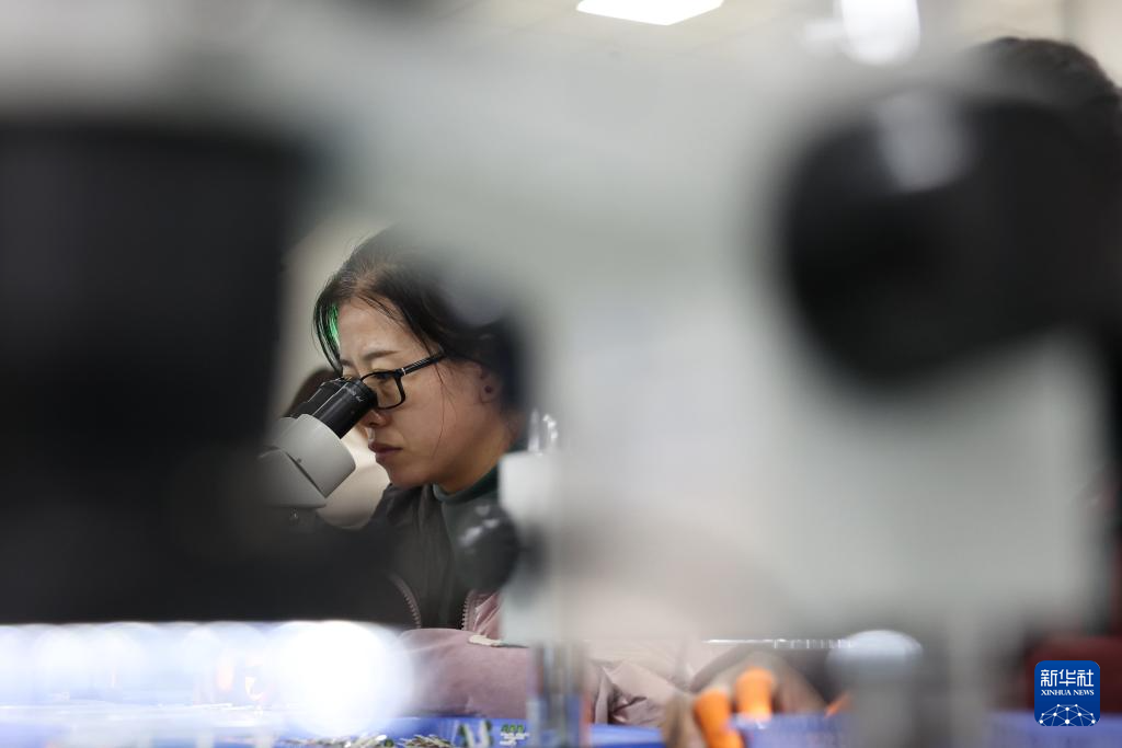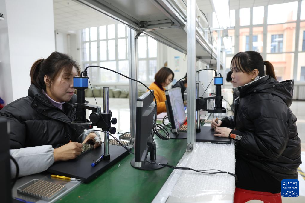 11月19日,工人在甘肃省平凉市泾川县中小企业孵化园内一家机电生产企业的微型振动马达生产线上作业。