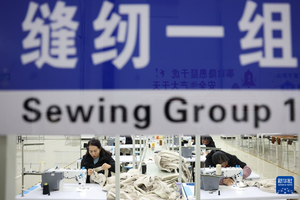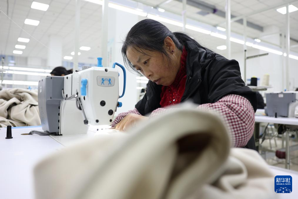 11月19日,工人在甘肃省平凉市泾川县中小企业孵化园内一家服装生产企业的车间内作业。