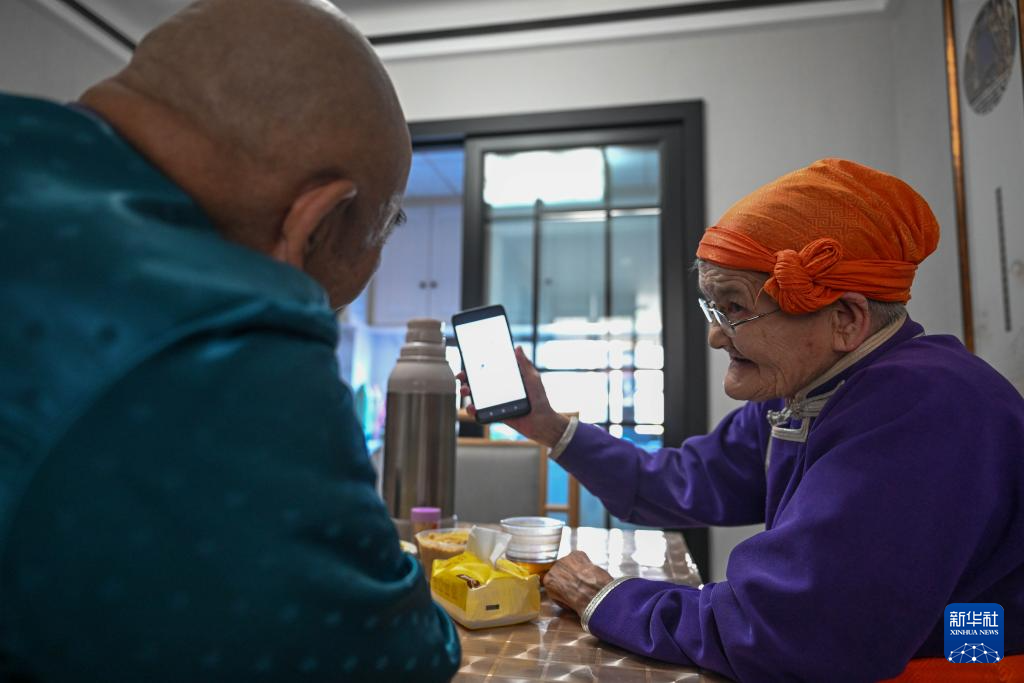 5月7日,都贵玛(右)给扎拉嘎木吉看她最近关注的新闻。新华社记者 连振 摄pagebreak