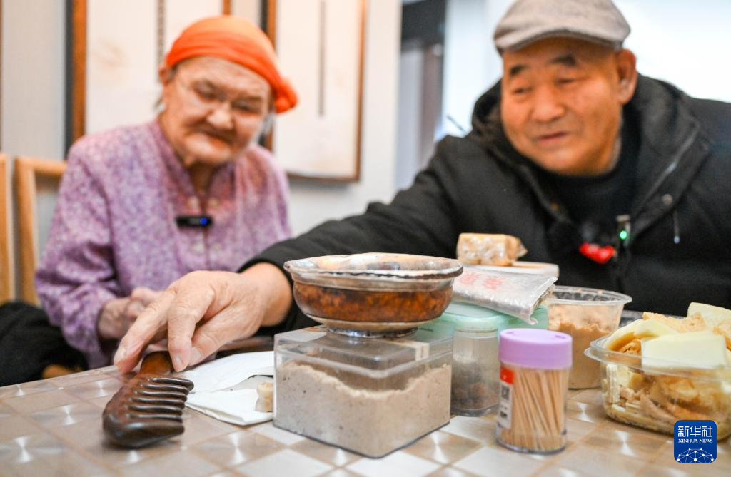 11月20日,扎拉嘎木吉在家中整理他从南京带来的礼物,准备去看望都贵玛老人。新华社记者 连振 摄pagebreak