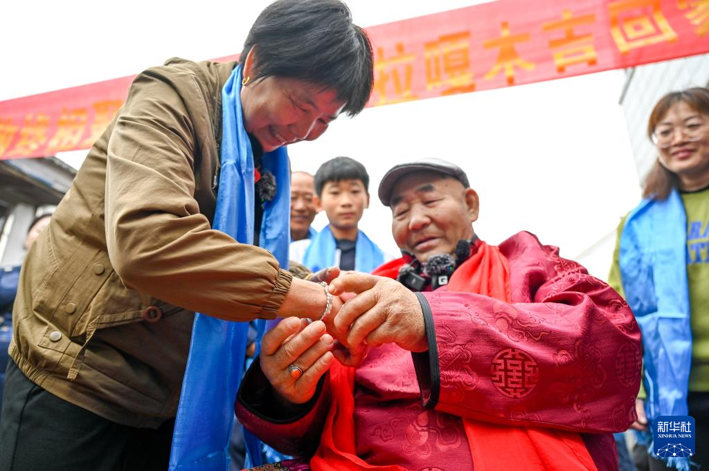 扎拉嘎木吉腿脚不便,见到姐姐后,从轮椅上站起抱住姐姐痛哭流涕。在家中,他为姐姐戴上了从内蒙古带来的定制手镯,并讲述他60多年来在内蒙古的生活经历。