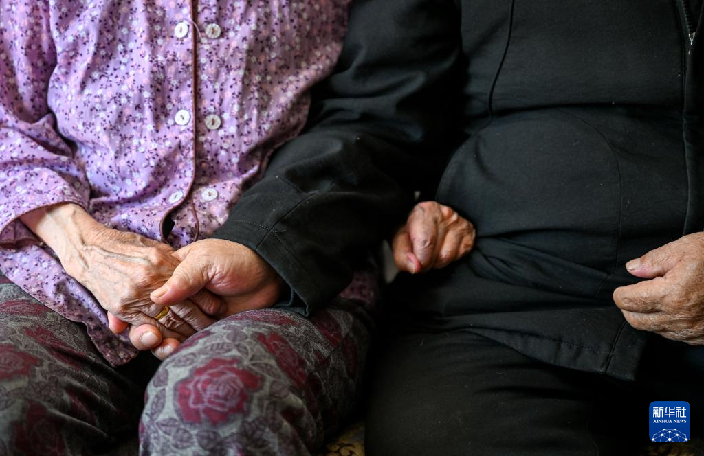 11月20日,都贵玛和扎拉嘎木吉(右)合影时,紧握对方的手。新华社记者 连振 摄pagebreak