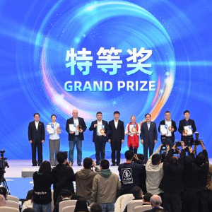 11月22日,获奖代表在颁奖典礼上领奖。