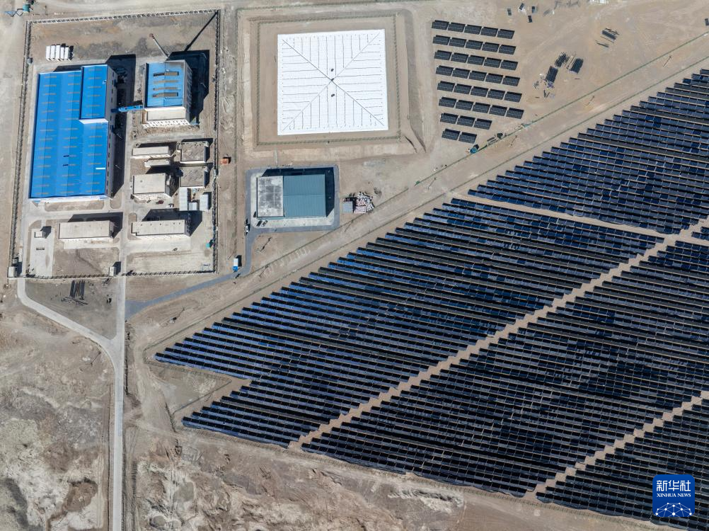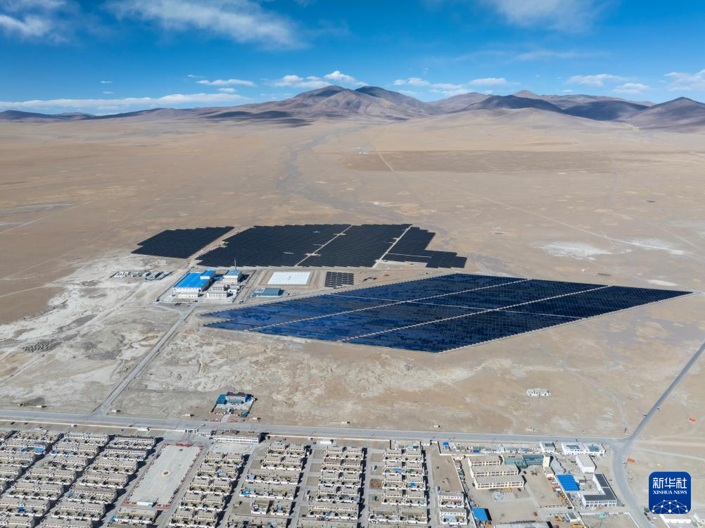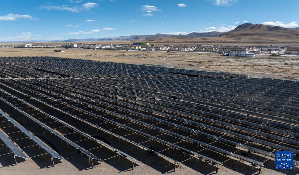 鸟瞰措勤县城区清洁能源集中供暖特许经营项目的光伏阵列(无人机照片,11月20日摄)。