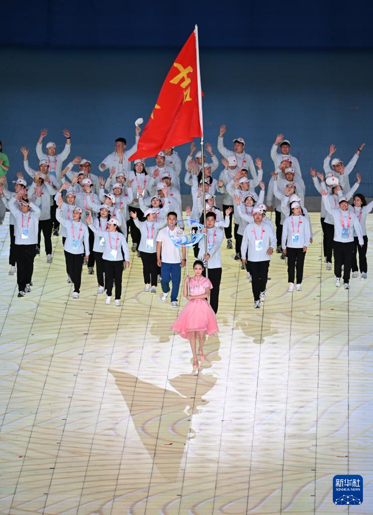 11月22日,新疆生产建设兵团代表团在开幕式上入场。