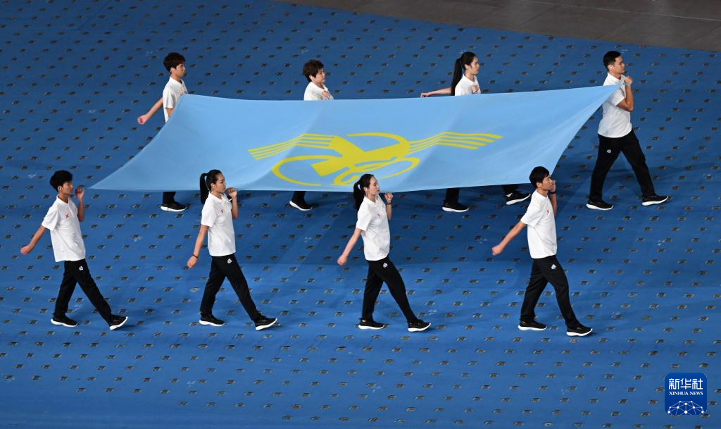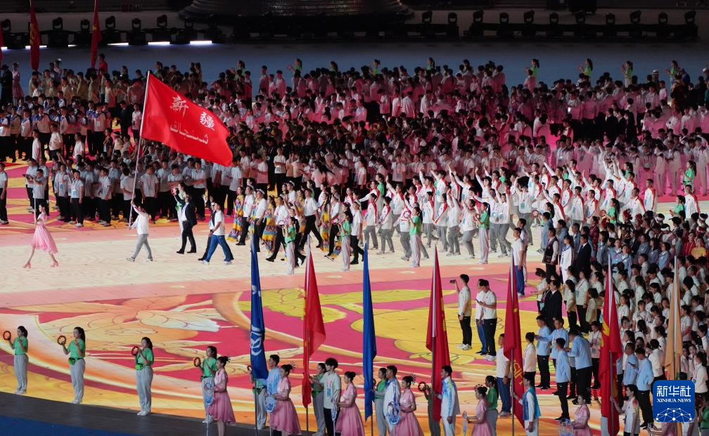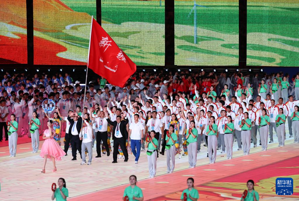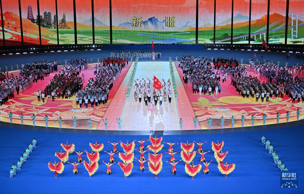 11月22日,新疆维吾尔自治区代表团在开幕式上入场。