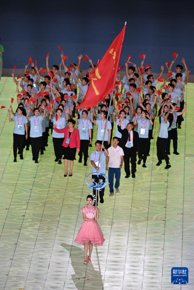 11月22日,天津市代表团在开幕式上入场。