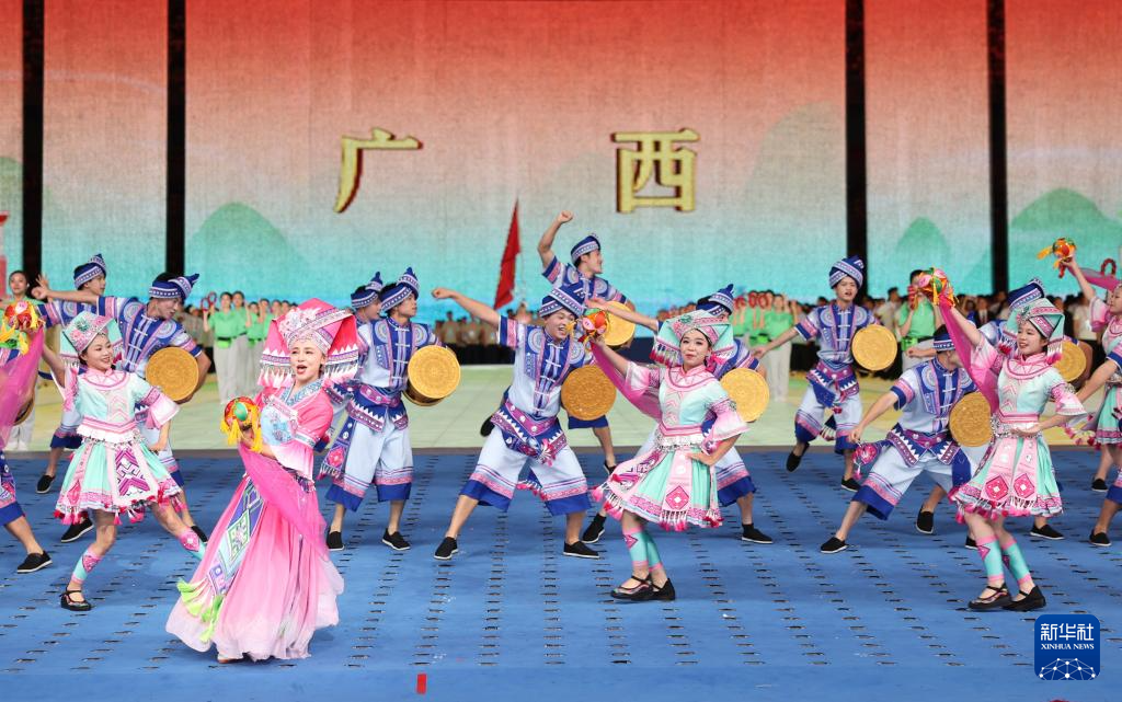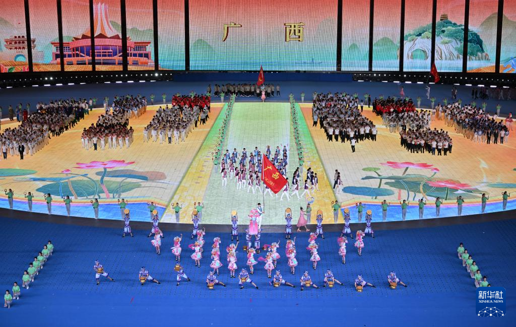 11月22日,广西壮族自治区代表团在开幕式上入场。