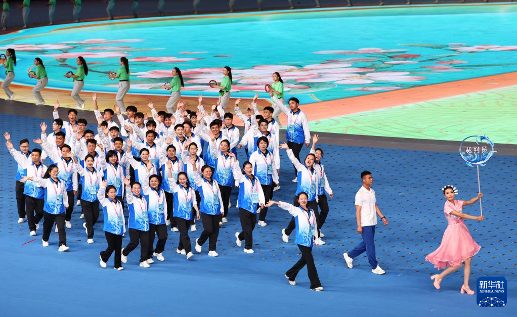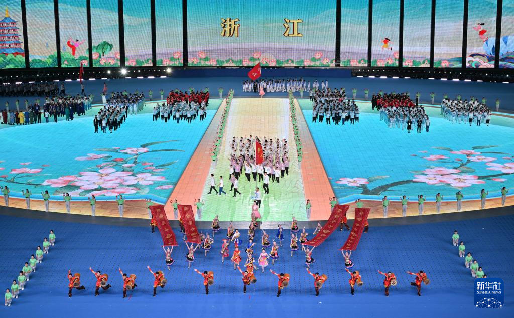 11月22日,浙江省代表团在开幕式上入场。