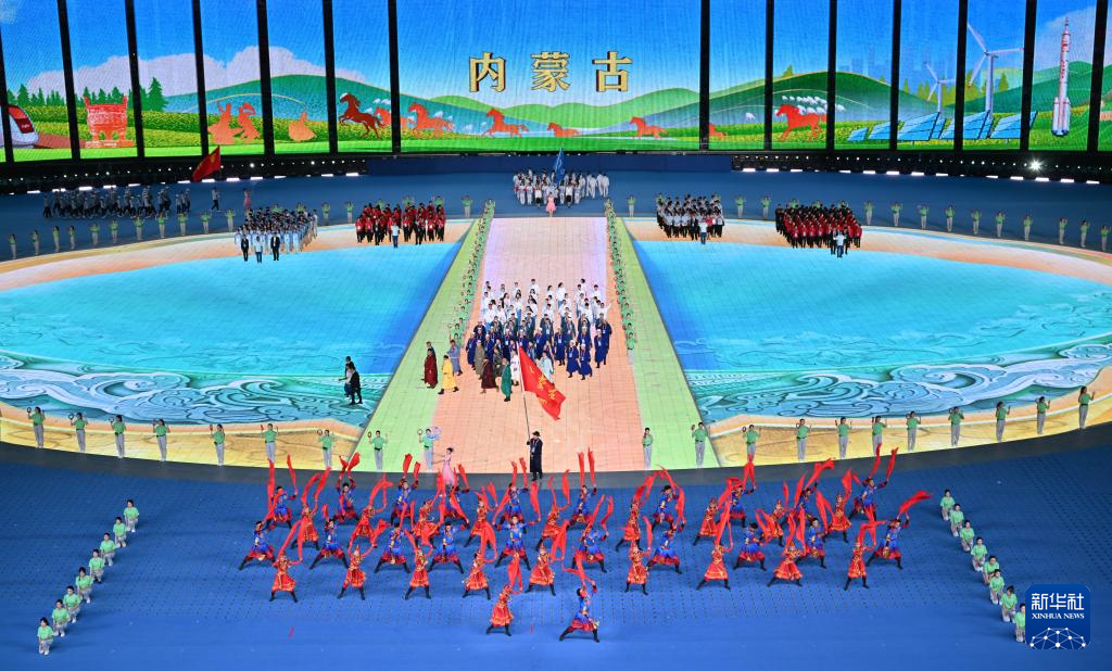 11月22日,内蒙古自治区代表团在开幕式上入场。