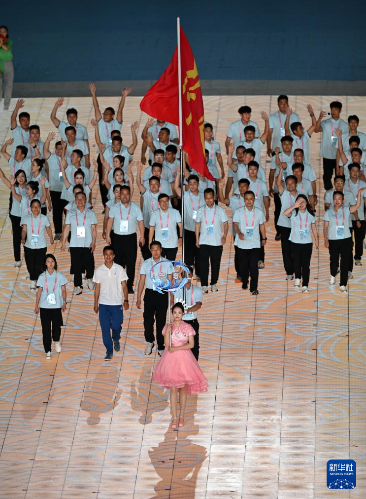 11月22日,宁夏回族自治区代表团在开幕式上入场。