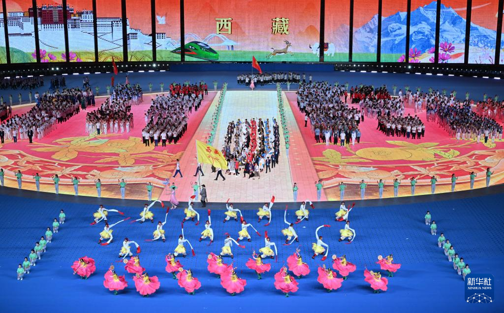 11月22日,西藏自治区代表团在开幕式上入场。