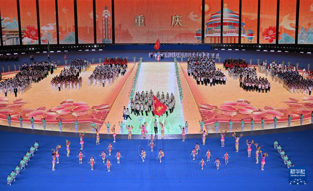 11月22日,重庆市代表团在开幕式上入场。