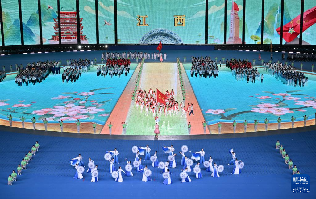 11月22日,江西省代表团在开幕式上入场。