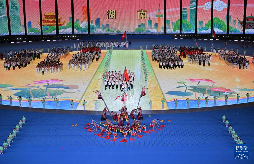 11月22日,湖南省代表团在开幕式上入场。