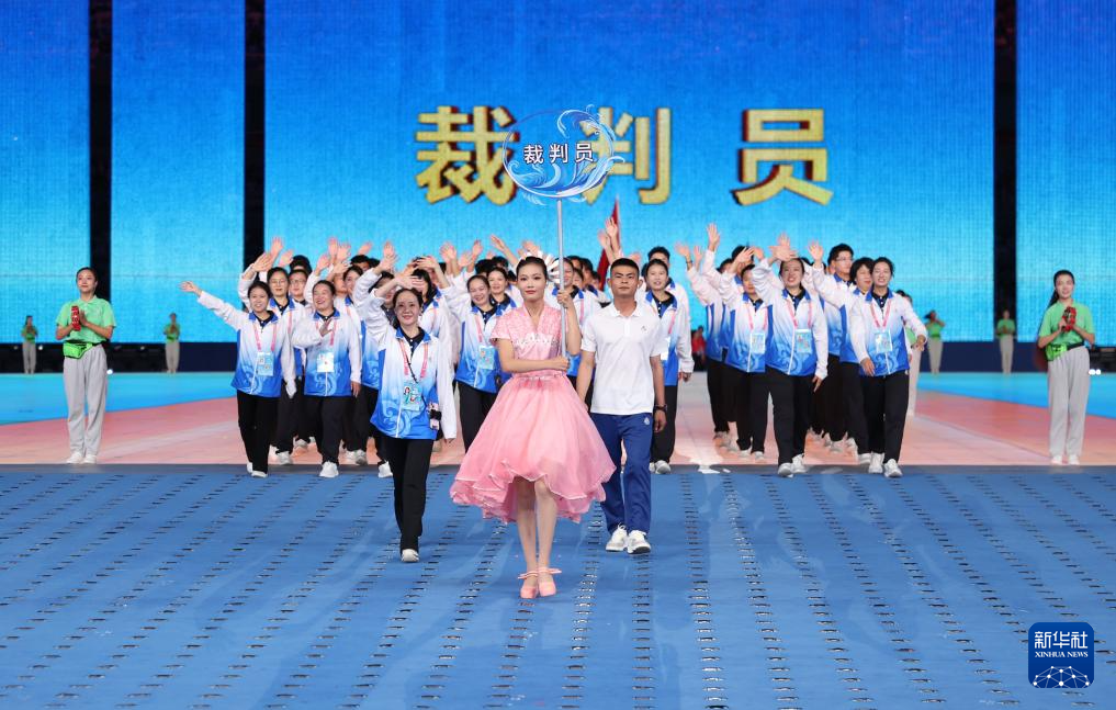 11月22日,裁判员代表在开幕式上入场。