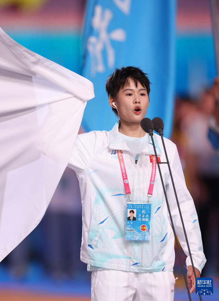 11月22日,运动员代表王艳在开幕式上宣誓。