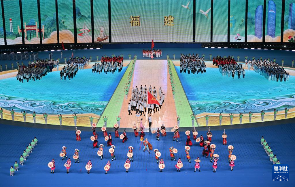 11月22日,福建省代表团在开幕式上入场。