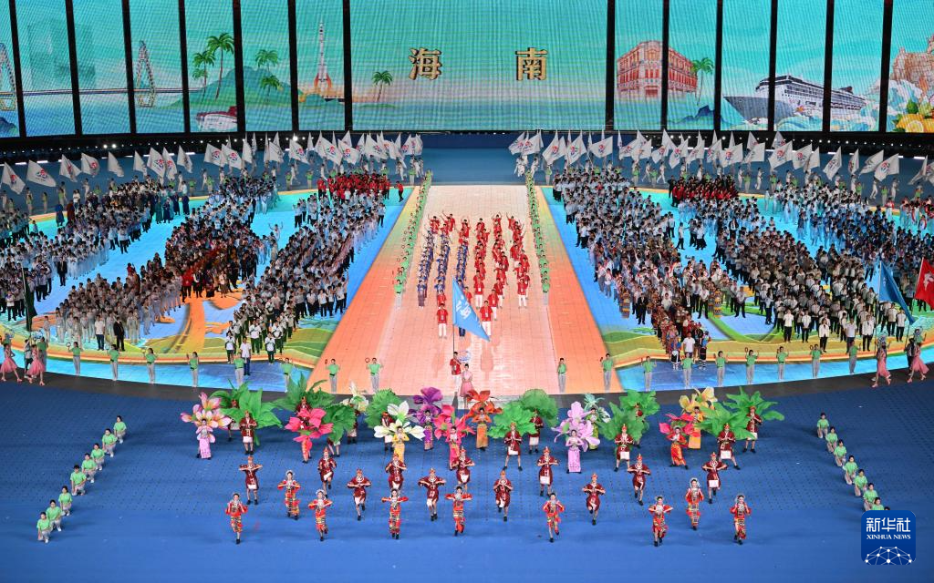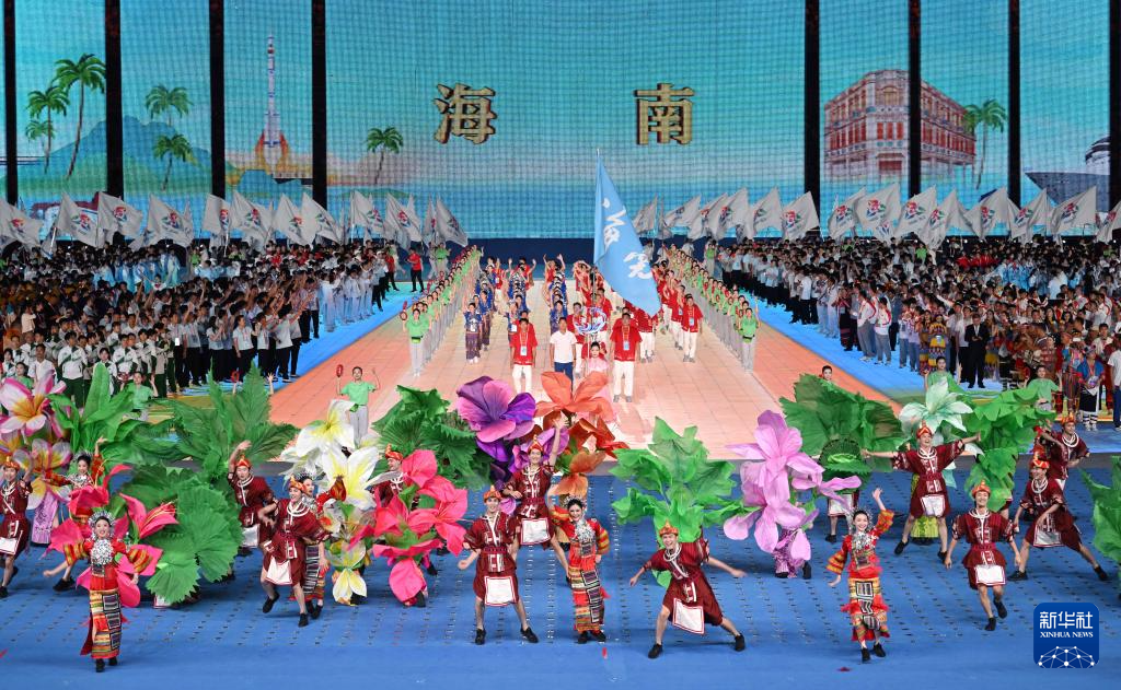 11月22日,海南省代表团在开幕式上入场。