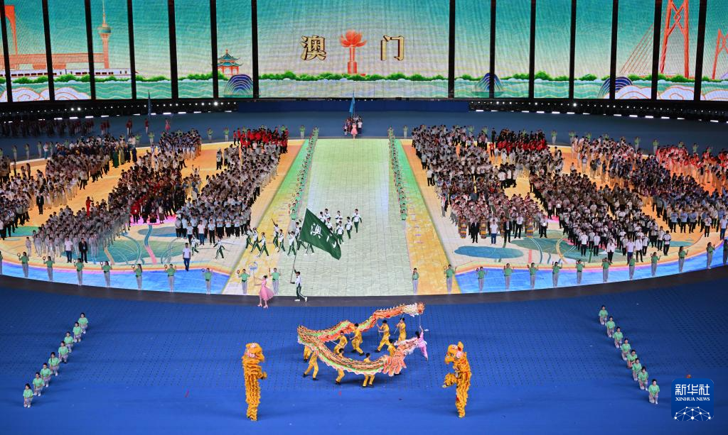 11月22日,澳门特别行政区代表团在开幕式上入场。