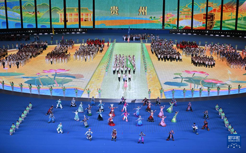 11月22日,贵州省代表团在开幕式上入场。