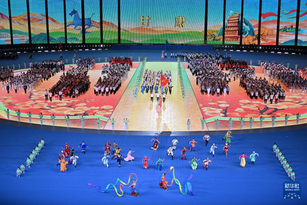 11月22日,甘肃省代表团在开幕式上入场。