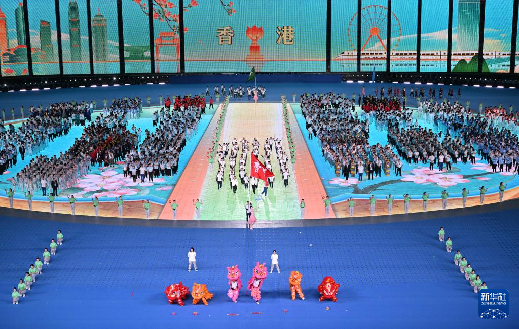 11月22日,香港特别行政区代表团在开幕式上入场。
