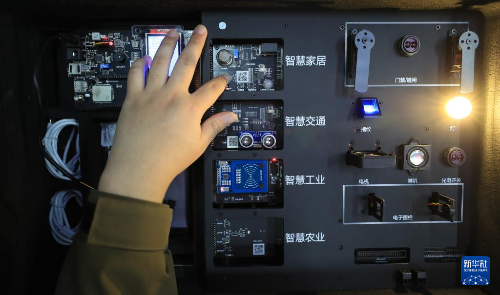 11月22日,沈阳工学院通信工程专业学生操作鸿蒙智联场景应用实训设备。