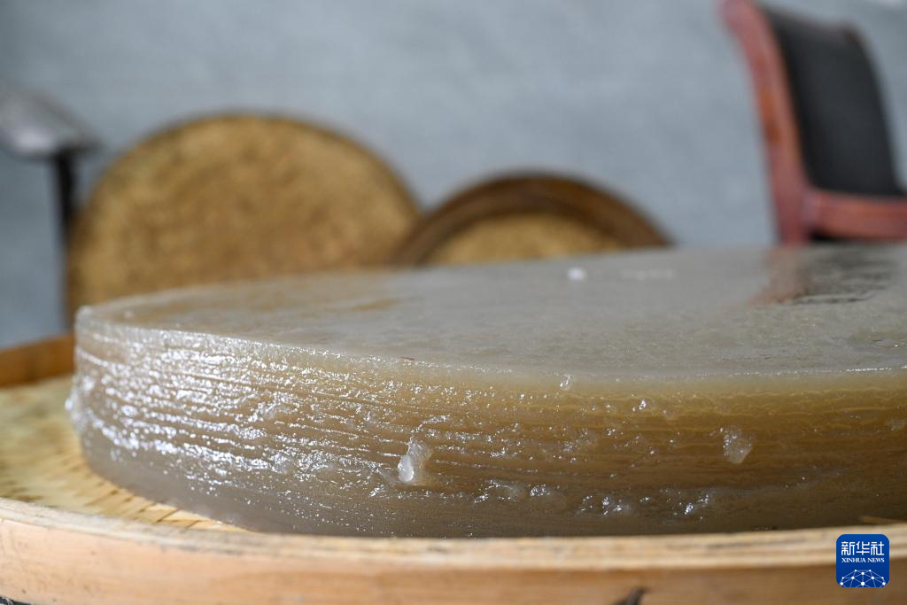 这是11月20日在浙江余姚鹿亭乡“鹿亭农合”共富工坊内拍摄的蒸熟的番薯面饼。