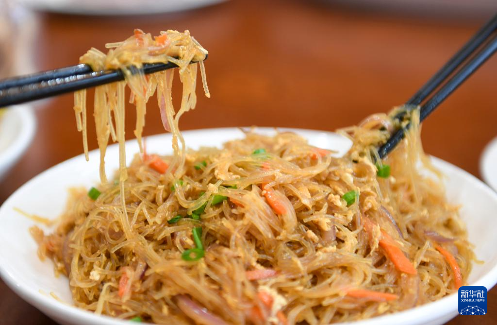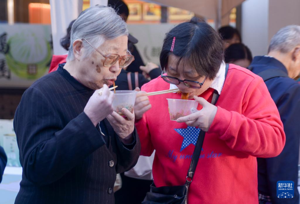 11月22日,在浙江宁波举行的鹿亭粉丝推介活动上,市民品尝鹿亭粉丝。
