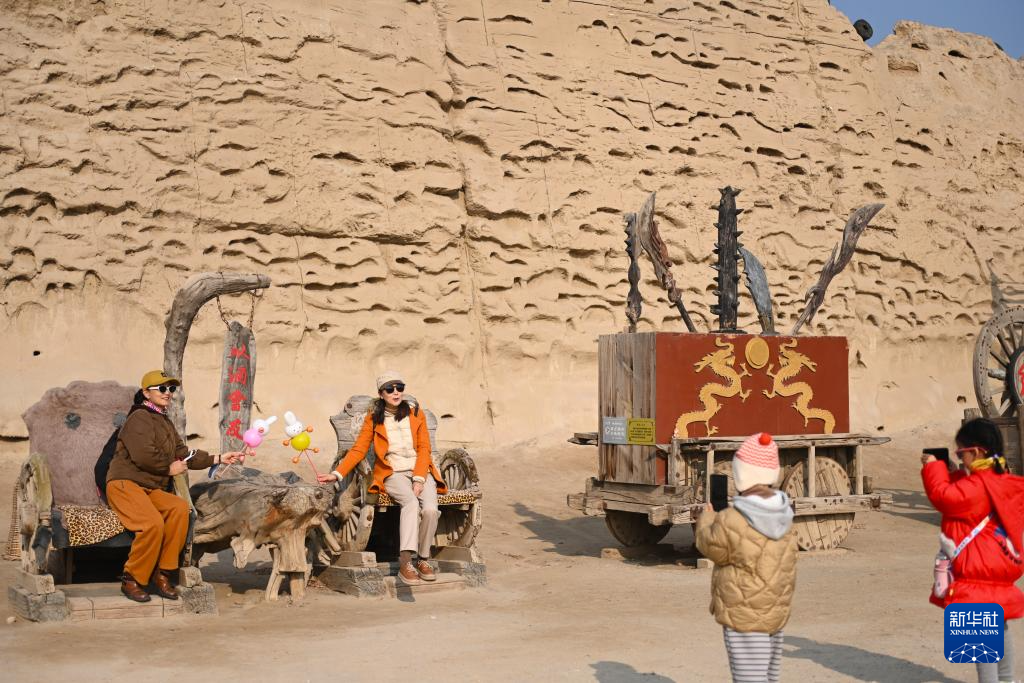 11月23日,游客在镇北堡西部影城打卡拍照。