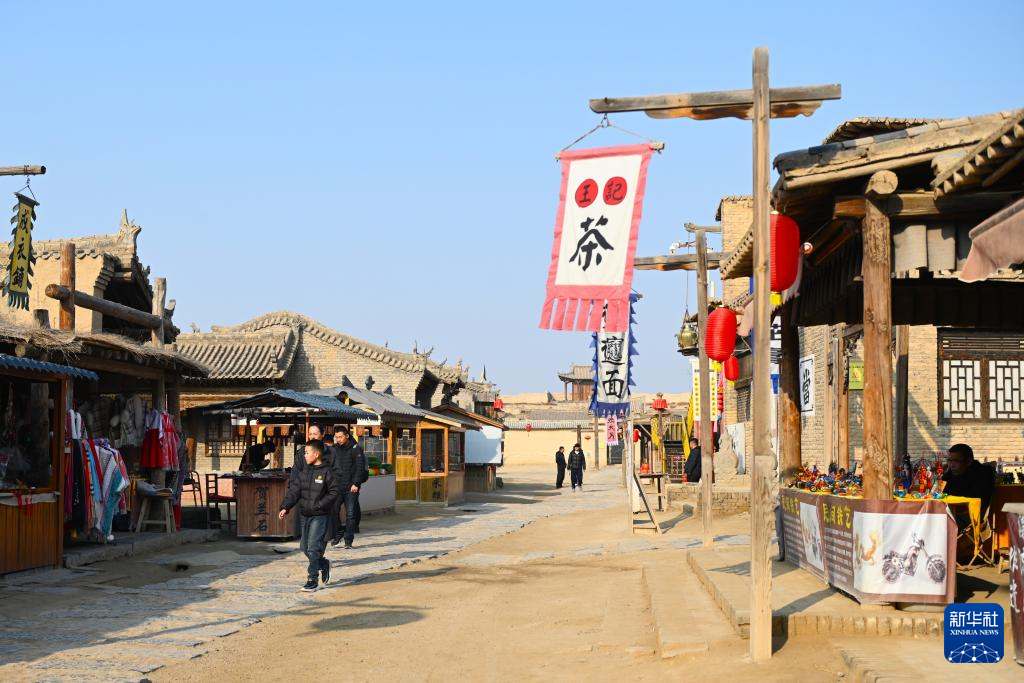 11月23日,游客在镇北堡西部影城的老银川一条街游览。
