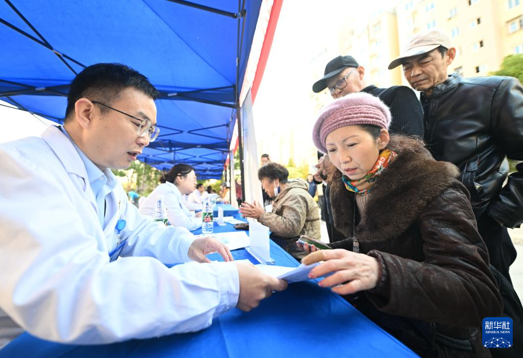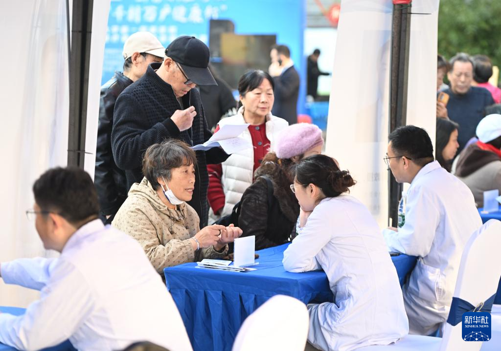 11月23日,在扬州市广陵区汤汪街道九龙村,医生为居民提供健康咨询。