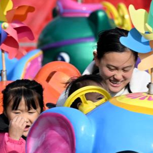 11月24日,家长带着小朋友在萧县“十月古会”上游玩。
