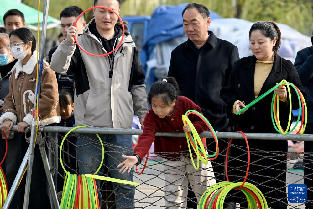 11月24日,家长带着小朋友在萧县“十月古会”上套圈。
