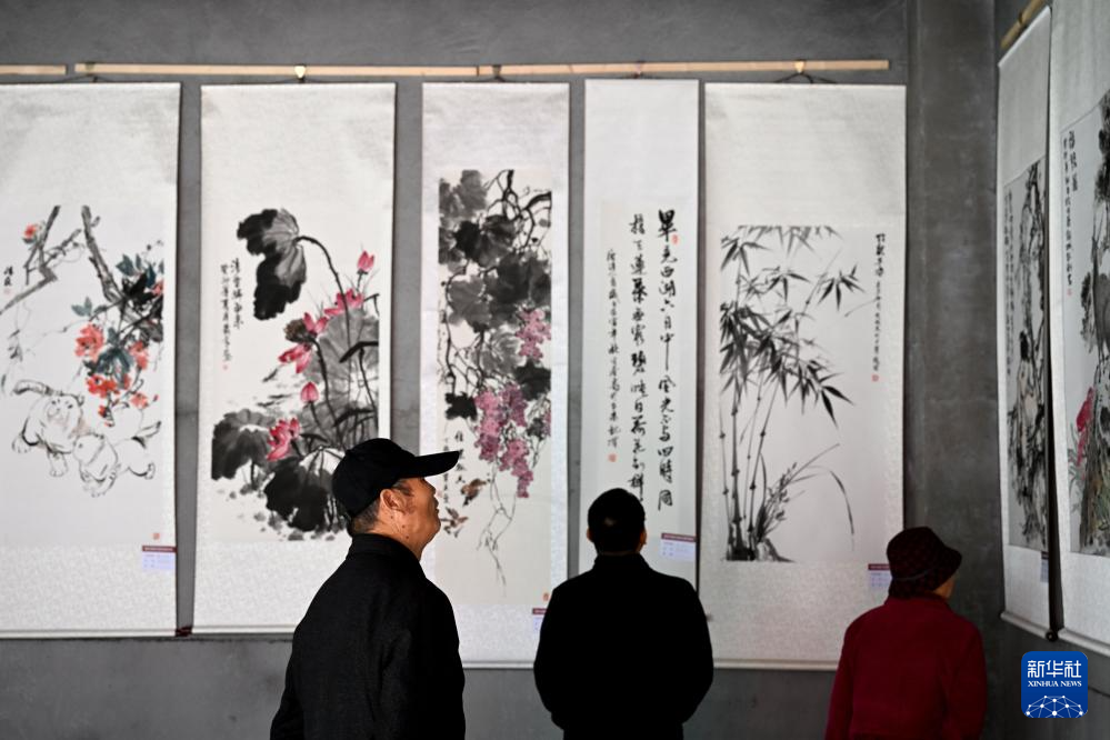11月24日,人们在萧县“十月古会”书画展览上参观。