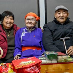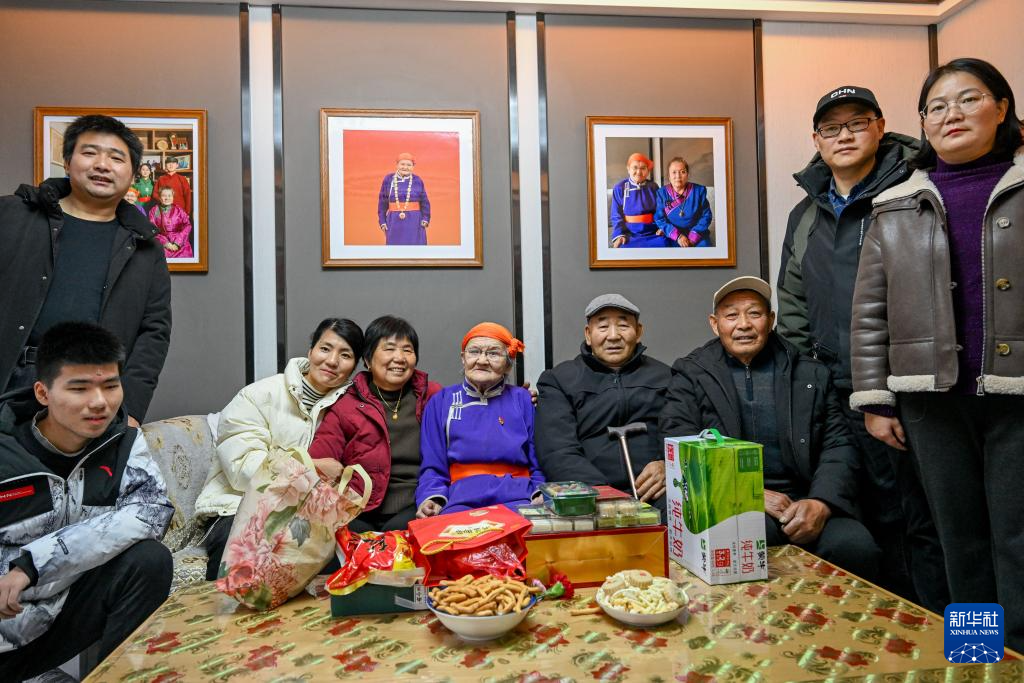 11月24日,扎拉嘎木吉一家和都贵玛老人合影。