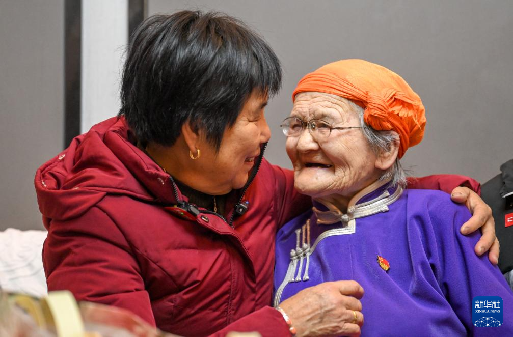 11月23日,扎拉嘎木吉(前左)欢迎姐姐杭巧云。