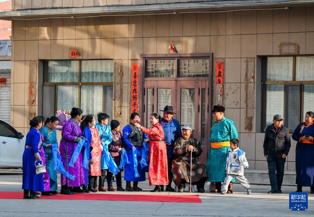 11月23日,扎拉嘎木吉(右五)和四子王旗的亲人们准备迎接杭巧云一家。