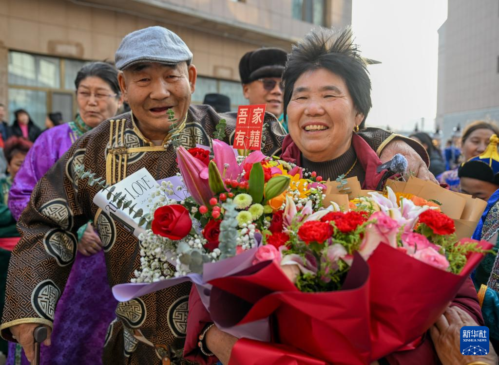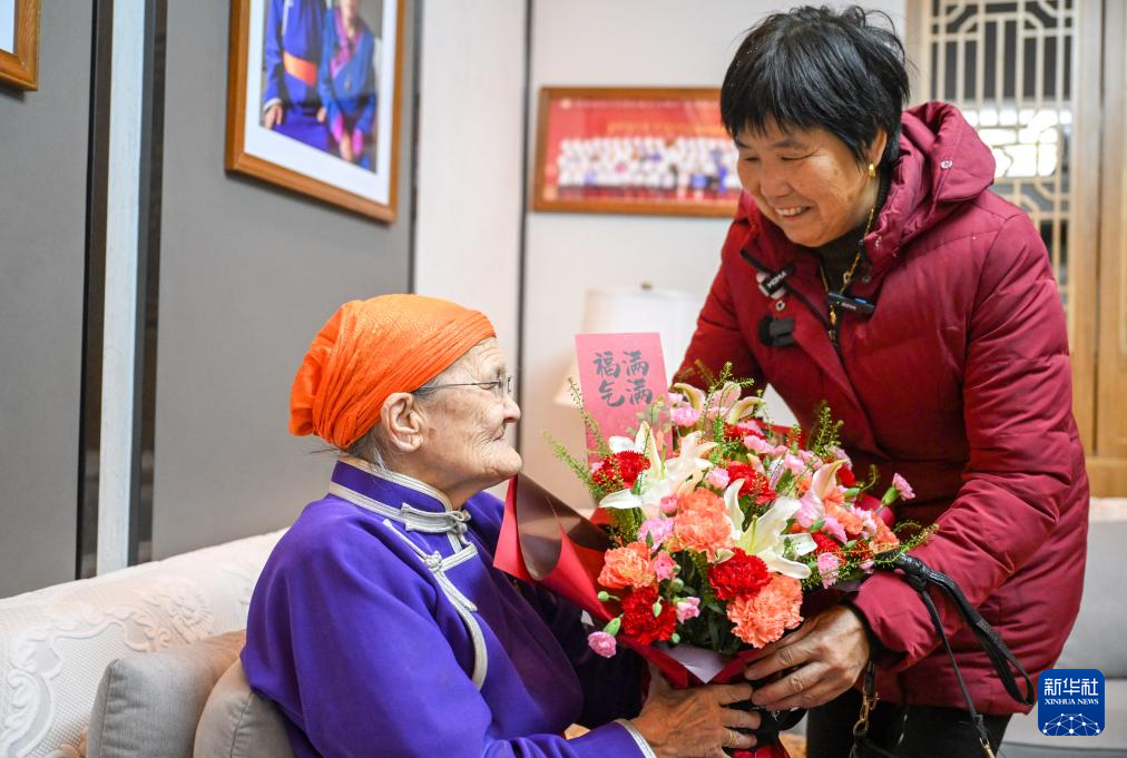 11月24日,杭巧云(右)给都贵玛送上鲜花。